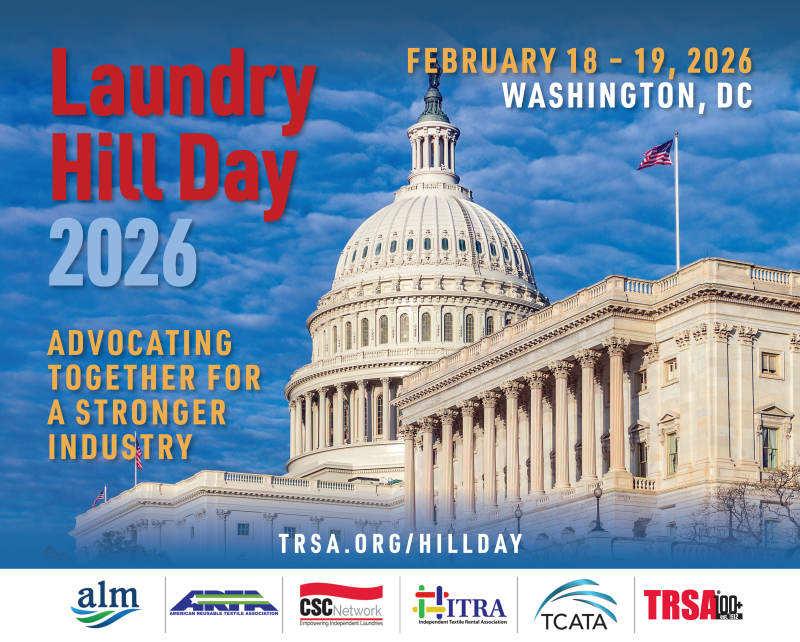 Held in conjunction with TRSA’s 16th Annual Legislative Conference & Awards Dinner, Laundry Hill Day will bring together more than 100 industry leaders for face-to-face meetings with members of Congress and their staff to discuss key policy priorities and educate lawmakers on the essential services the industry provides. Attendees will advocate for pro-business policies, sustainable solutions, improved safety and economic growth, while networking with peers from across the country.