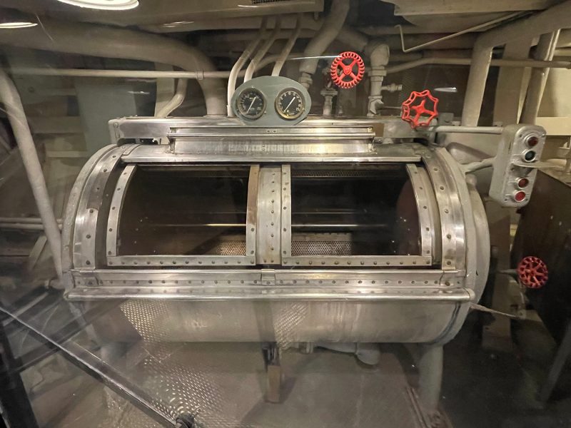 For those familiar with the laundry industry, one of the most interesting aspects of the exhibit is that the Ellis dryers originally installed aboard the ship remain in place today.